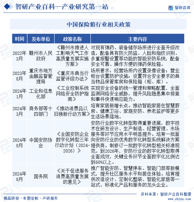 安全箱次要涉及财富、现私以及正在某些环境下的财富保全办法。跟着人们小我现私思惟日渐成熟,以及各地对于财富平安保障场合扶植要求不竭提拔,例如处所金融监视办理局正在《典当行监管评级法子》中要求运营场合内应设置合适平安要求的典当物品保司库房和安全箱(柜、库),使得国内安全箱等平安设备使用需求呈现不竭提拔态势。此外,近年来,跟着“数字中国”和“更高程度安然中国”扶植想谋的深切实施,新型数字化产物升级成为安全箱等安防财产转型升级的主要成长趋向之一。例如,2024年8月,中国安防协会发布的《全国安防企业数字化转型三年步履打算(2024-2026)》提出,安防行业数字化转型取得主要进展,数字手艺正在研发设想、出产制制、运营办理、市场办事等环节使用程度较着提拔;培育一批面向安防行业的优良数字化转型系统处理方案供给商;制修订一批数字化转型相关尺度规范;到2026年,安防行业的数字化转型取得全面成效,环节营业环节全面数字化比例达到60%以上。